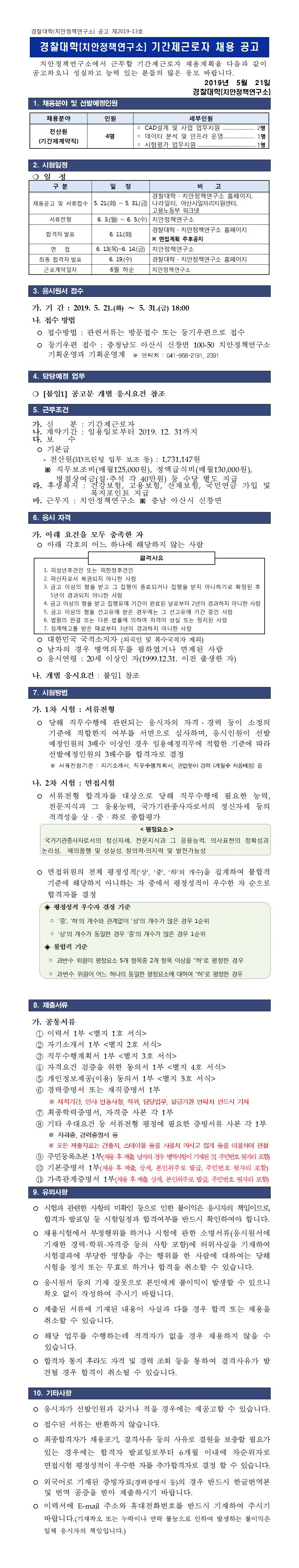 (재공고) 2019년도 치안정책연구소 기간제근로자 채용 공고